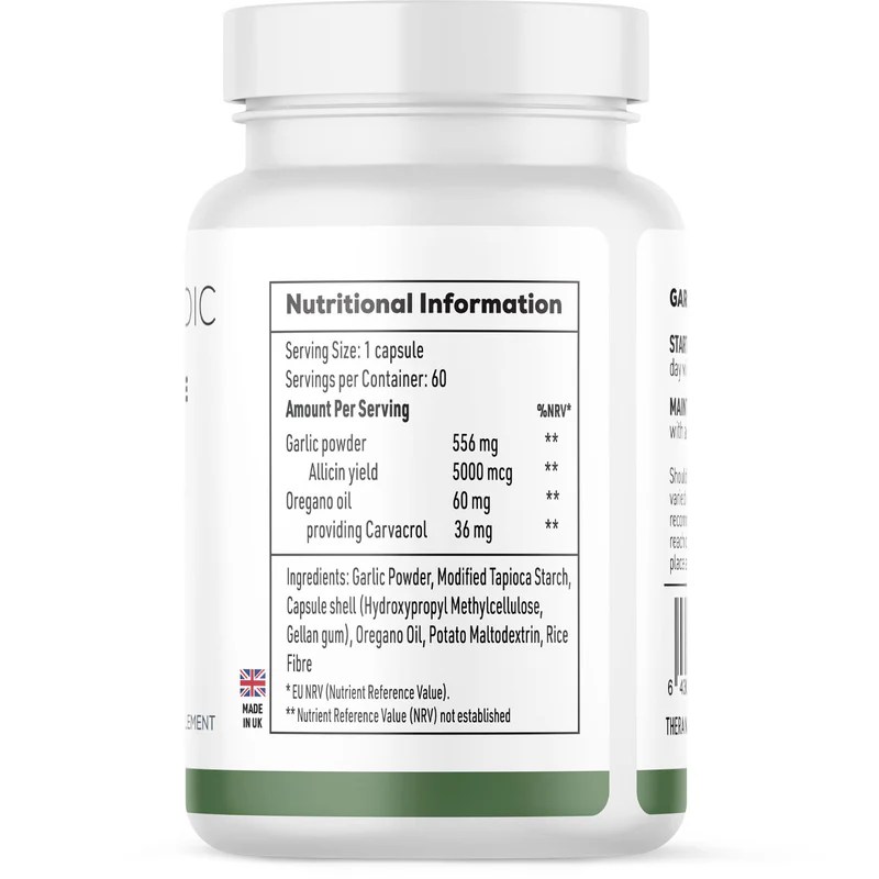 | Valkosipuli sisältää vahvaa antimikrobiaalista ainetta nimeltä Allisiini. Tämä aine on se mikä valkosipulissa tuoksuu voimakkaasti. Allisiini tappaa tehokkaasti sekä gram-positiivisia että negatiivisia bakteereita, sekä tehoaa hiivoihin (erityisesti Candida). Allisiini on melko herkkä aine, ja siksi sitä ei voi kapseloida suoraan kapseliin. Jos näin tekisi, siinä vaiheessa kun kapseli niellään, siinä ei olisi enää yhtään allisiinia jäljellä. Tästä syystä tuotteessamme on valkosipulia sellaisessa muodossa että se sisältää allisiinin varastomuotoa – Alliinia. Kun Alliini pääsee ohutsuoleen, entsyymit muuntavat sen aktiiviseksi allisiiniksi ja näin koko teho pääsee kohdistumaan suoraan sinne minne halutaankin – eli suolistoon. |